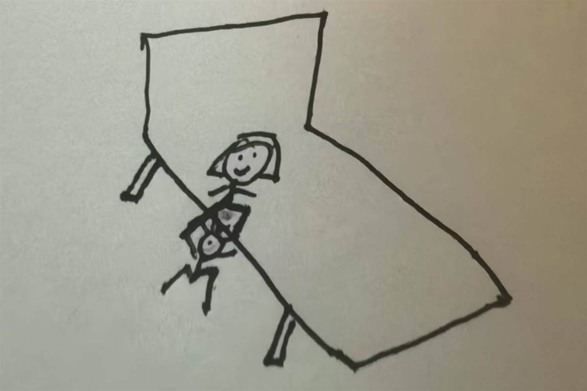 腿放,腳踩另腳丫子,腿踩,彎曲著膝蓋,腿與面垂直。
